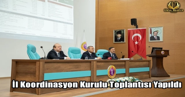 Sektörel gelişmeler ile yatırımları değerlendirmek, sorunları ve çözüm önerilerini ele almak, kurumlar arası işbirliği ve koordinasyonu sağlamak amacıyla gerçekleştirilen İl Koordinasyon Kurulu Toplantısında, ilçe kaymakamları, ilçe belediye başkanları, yatırımcı kuruluşların bölge ve il müdürleri ile sanayi ve ticaret konusunda faaliyet gösteren STK temsilcileri hazır bulundu.