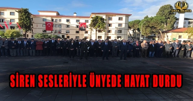 Ünye Cumhuriyet Meydanı'nda düzenlenen törende Kaymakamlık, Belediye Başkanlığı, Ordu Üniversitesi Ünye İktisadi ve İdari Bilimler Fakültesi Dekanlığı, AK Parti, CHP, MHP, İYİ Parti, Atatürkçü Düşünce Derneği Ünye Şubesi ile Türkiye Yardımseverler Ünye Şubesi, Ünye Ticaret ve Sanayi Odası, çelenkleri anıt önüne koyuldu