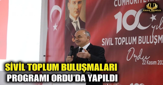 Ramada Otel'de gerçekleştirilen "Cumhuriyetin 100. Yılında Sivil Toplum Buluşmaları" etkinliğine, Vali Muammer Erol, Sivil Toplumla İlişkiler Genel Müdür Yardımcısı Ahmet Türköz, Vali Yardımcısı Ayhan Durmuş, İl Sivil Toplumla İlişkiler Müdürü Ali Kemal Mert ve Ordu'da faaliyet gösteren STK'ların temsilcileri katıldı.