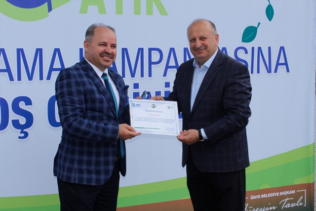 Ünye Cumhuriyet Meydanı'nda düzenlenen programda ise geri dönüşüme dikkat çekildi. Plastik, kağıt ve atık yağlar görevlilerce toplanırken en fazla atık getirenler ödüllendirildi. Yapılan etkinlikte 1100 Kg. plastik, 35 Kg. metal ambalaj atığı, 150 litre bitkisel yağ toplandı.