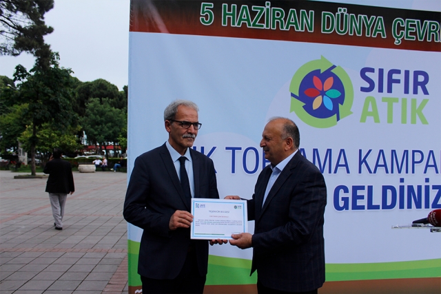 Ayrıca atık pil kategorisinde Atatürk İlkokulu, Mehmet Refik Anadolu Lisesi ve Anafarta İlkokulu'na teşekkür belgeleri ve hediyeleri takdim edildi.