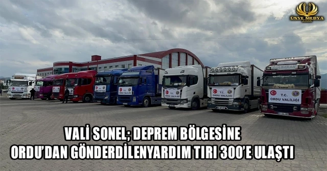 Deprem bölgesine bugüne kadar Ordu'dan 291 yardım tırı gönderilmişti. Bugün konteynır ile gıda maddelerinden oluşan 9 tırın daha deprem bölgesine gönderilmesiyle birlikte toplamda 300 tır dolusu yardım malzemesi depremzede vatandaşlarımıza ulaştırıldı. Ordu Valiliği koordinesinde toplanan ve depremzedelere ulaştırılmak üzere konteynır ile gıda malzemelerinden oluşan 9 yardım tırı, Vali Tuncay Sonel'in de katılımıyla deprem bölgesine uğurlandı. Beraberinde AFAD İl Müdürü Osman Işık ve Sosyal Yardımlaşma il Müdürü Levent Özsoy ile birlikte 6 Şubat'ta yaşanan depremde hayatını kaybeden vatandaşlarımıza Allah'tan rahmet, yaralananlara da acil şifalar temennisinde bulunarak konuşmasına başlayan Vali Tuncay Sonel, "Depremin ilk anından itibaren Sayın Cumhurbaşkanımızın riyasetinde Bakanlarımızla, devletimizle milletimizle el ele deprem bölgesindeydi. Bizler de depremin ilk gününden itibaren Ordu olarak Adıyaman'daydık ve arkadaşlarımızla birlikte bu süreci hep birlikte yaşadık" diye konuştu. "Milletimizin her bir ferdine ayrı ayrı teşekkür ediyorum. Çocuğundan, yaşlısına kadar asil milletimiz depremde zarar gören vatandaşımıza katkıda bulundular" diyen Vali Sonel, konuşmasında Ordulu vatandaşlarımıza özel olarak teşekkür etti. Vali Sonel, "Ordu'da 19 ilçemizde vatandaşlarımızın deprem bölgesine özellikle de Adıyaman'a büyük katkıları oldu. Deprem bölgesine 9 tır yardım malzemesi çıkartıyoruz. Böylelikle Ordu'dan bugün itibariyle 300'üncü yardım tırı deprem bölgesine gitmiş oluyor. Deprem bölgesine emek veren, katkı sunan tüm çalışma arkadaşlarıma, tüm Ordulu hemşehrilerimize, tüm milletimize, çocuğundan yaşlısına emek veren herkese, katkı sunanlara şükranlarımı sunuyorum. Allah razı olsun" şeklinde konuştu.