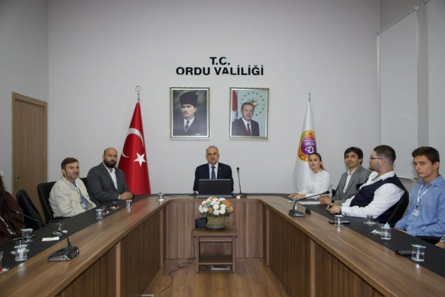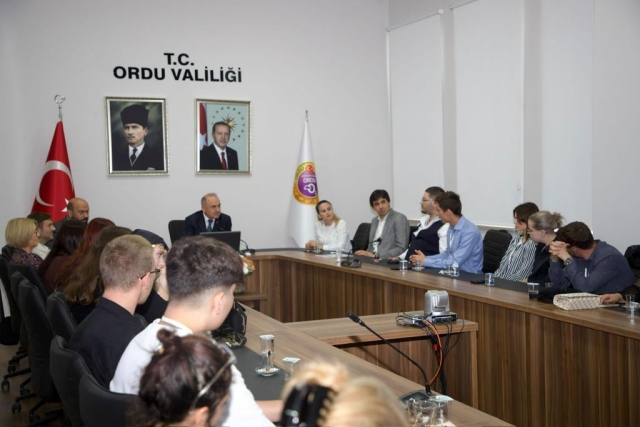 Valilik Toplantı Salonunda Almanya ve Polonya’dan gelen 19 öğrenci ve koordinatör heyeti kabul eden Vali Erol, “Sizleri güzel Ordu'muzda görmekten büyük bir mutluluk duyduk. Bu ziyaret sürenizde keyifli, mutlu bir zaman geçirirsiniz. Dünyada en fazla fındığın üretildiği Karadeniz’in incisi Ordu’dan güzel izlenimler ve anılarla ülkelerinize dönmenizi temenni ediyoruz” dedi.