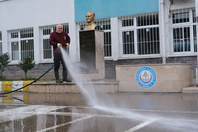 Altınordu Belediyesi, 2 Şubat Pazartesi günü başlayacak ikinci eğitim-öğretim dönemi öncesinde ilçe genelindeki tüm okullarda geniş çaplı bir temizlik operasyonu gerçekleştirdi. Öğrencilerin hijyenik bir ortamda eğitim görmesi hedefiyle yürütülen çalışmalar, okul bahçeleri ve ortak alanların detaylı şekilde yıkanmasını kapsadı.