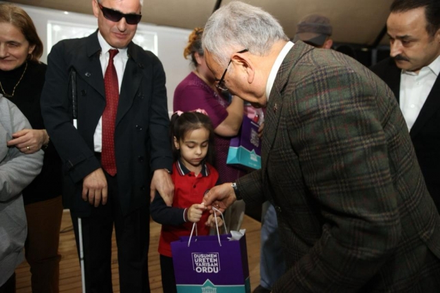 Büyükşehir Belediyesi Kültür Otağı’nda görme engelliler ve ailelerine yönelik bir etkinlik düzenledi. Büyükşehir Belediye Başkanı Dr. Mehmet Hilmi Güler’de, MHP Ordu Milletvekili Naci Şanlıtürk ve AK Parti Ordu İl Başkanı Selman Altaş ile davete katılan misafirleri yalnız bırakmadı. Masaları tek tek gezen Başkan Güler tüm misafirlerle sohbet etti.