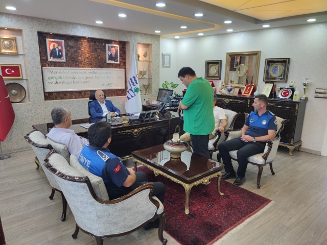 Ünye Belediyesi Zabıta Müdürlüğü, 1-7 Eylül Zabıta Haftası kapsamında Ünye Belediye Başkanı Hüseyin Tavlı’yı ziyaret etti. Belediye Başkan Yardımcıları Orhan Gürel ve Ali Kemal Mehel’in de bulunduğu ziyarette Başkan Tavlı, zabıtalar adına Zabıta Müdür Vekili Serkan Berk’e çiçek takdim etti.