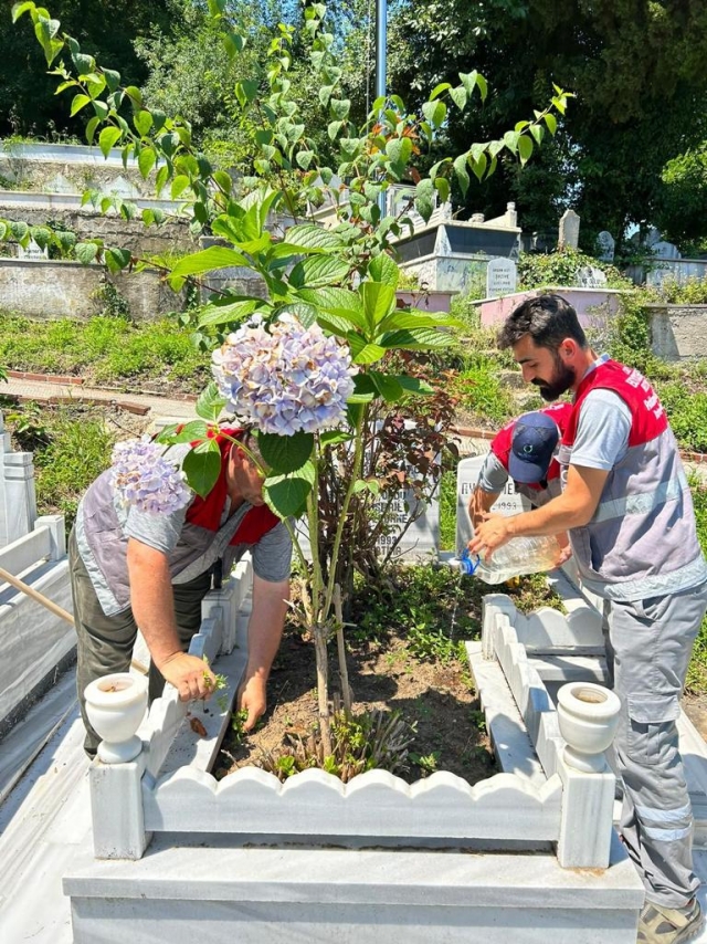 Parklar ve Yeşil Alanlar Dairesi Başkanlığına bağlı Mezarlıklar ve Cenaze Hizmetleri Şube Müdürlüğü ekipleri, 15 Temmuz Demokrasi ve Milli Birlik Günü öncesinde de şehitleri unutmadı. Mezarlıklarda temizlik ve düzenleme çalışması gerçekleştiren ekipler, şehit mezarlarının başucunda bulunan Türk bayraklarını da yenisiyle değiştirdi.