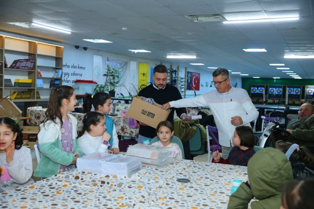 Öte yandan kurulan kütüphaneye kitabın yanı sıra birçok oyuncakta götürüldü. Kütüphanede bulunan öğrencilere hediye edildi.