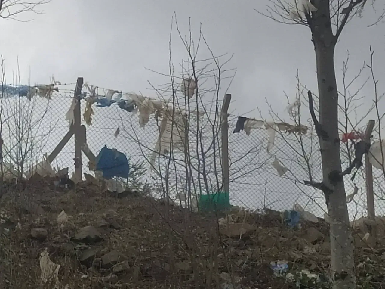 Şimdi ise tesisteki poşet ve diğer atıklar, rüzgarla taşınarak orman ve tarım arazilerini tamamen doldurmuş durumda. Görüntü, çevreye verilen zararın boyutlarını gözler önüne seriyor.