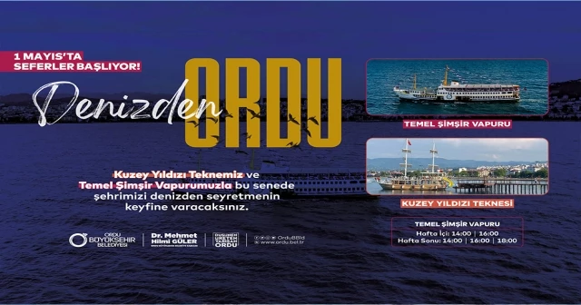 Ordu Büyükşehir Belediye Başkanı Dr. Mehmet Hilmi Güler tarafından Ordu turizmine kazandırılan Şehit Temel Şimşir Vapuru ve Kuzey Yıldızı Teknesi 1 Mayıs Pazartesi günü sezonu açıyor. Ordu’yu denizden seyretmek isteyenlere eşsiz gü