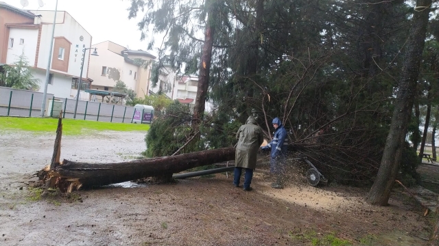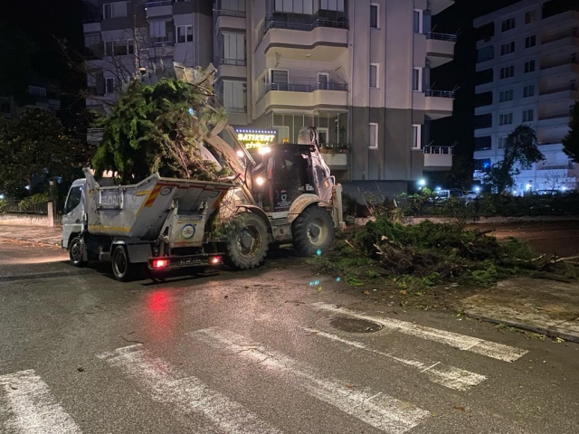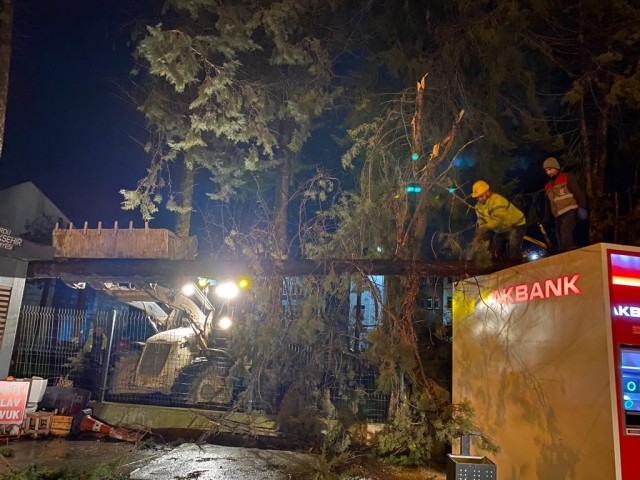 Parklar ve Yeşil Alanlar Dairesi ile İtfaiye Dairesi Başkanlığına bağlı 131 personel ve 61 araç ile gece boyu fırtına mesaisi yaptı. Ekipler, çatı uçması, ağaç ve baca devrilmesinin yanı sıra tehlike oluşturan parçaya müdahale olmak üzere 50 olaya müdahale etti.