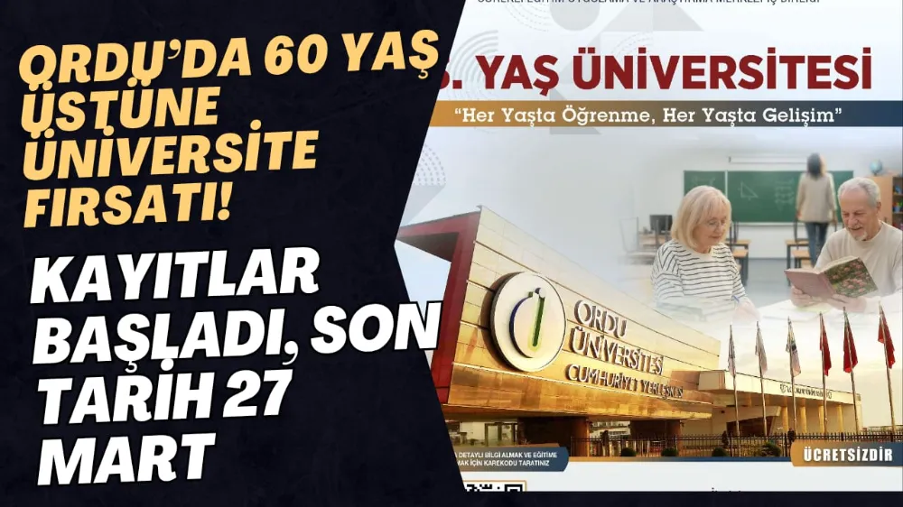 ORDU’DA 60 YAŞ ÜSTÜNE ÜNİVERSİTE FIRSATI! KAYITLAR BAŞLADI, SON TARİH 27 MART