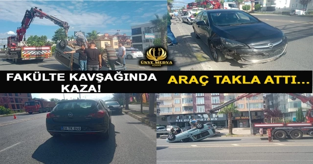 FAKÜLTE KAVŞAĞINDA KAZA! ARAÇ TAKLA ATTI…