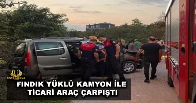 FINDIK YÜKLÜ KAMYON İLE TİCARİ ARAÇ ÇARPIŞTI