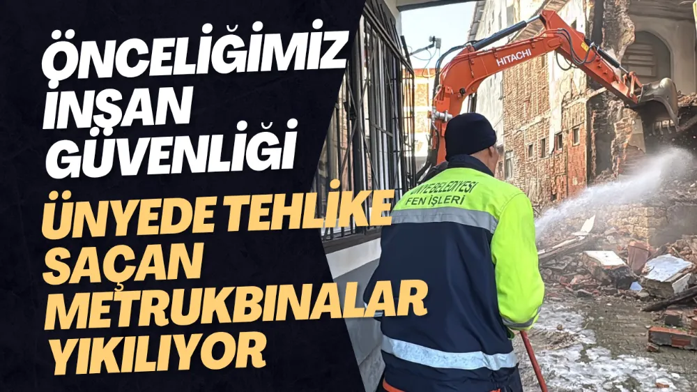 Ünye Belediye Başkanı Hüseyin Tavlı, özellikle terk edilmiş ve zamanla yapısal bütünlüğünü kaybeden binaların; çevrede yaşayan vatandaşlar, çocuklar ve yayalar için ciddi riskler oluşturduğuna dikkat çekerek, “Vatandaşlarımızın güvenliği her zaman önceliğimizdir. İlçemizin farklı noktalarında tehlike arz eden metruk yapıları tespit ederek, gerekli tüm güvenlik önlemlerini alıyor ve kontrollü yıkım işlemlerini gerçekleştiriyoruz. Bu çalışmalarımız 2026 yılında da aralıksız devam edecek” ifadelerine yer verdi.