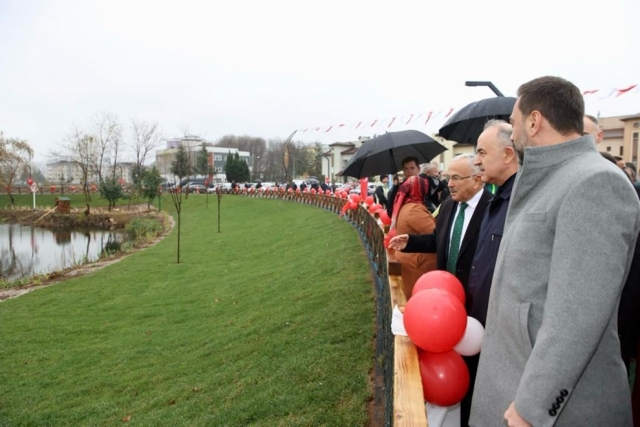 Yapılan çalışmalara da değinen Başkan Güler, “Burada 1750 kişi çalıştı. 1120 ağaç diktik. 5 bin tane de küçük ağaç diktik. Ağaç sökme makinamız aracılığıyla 19 ağacın yerini değiştirdik. 14 bin 400 mevsimlik çiçek diktik. Müzikle su dansı yapan çok güzel bir havuz yaptık. Buraya turistlik amaçlı katma değer katacak, Boztepe’den seyredilecek bir zenginlik bu. 25 adet kuş evi yaptık. 5 adet kitaplık koyduk. Parkta canı sıkılan otursun bu güzel ortamda kitabını okusun istedik. Kent mobilyaları, bir adet kuş gözlem evi, 2 adet ördek kümesi, 3 adet de kuş yemliği koyduk. Burası güzel bir hale geldi. Değişik ağaç türleri diktik. Hakikaten bir tabiat parkı oldu. Akabinde alanda yine sürprizlerimiz olacak. Hepinizin emrine amade bir çalışma ortaya koyduk. Güle güle kullanın” dedi.