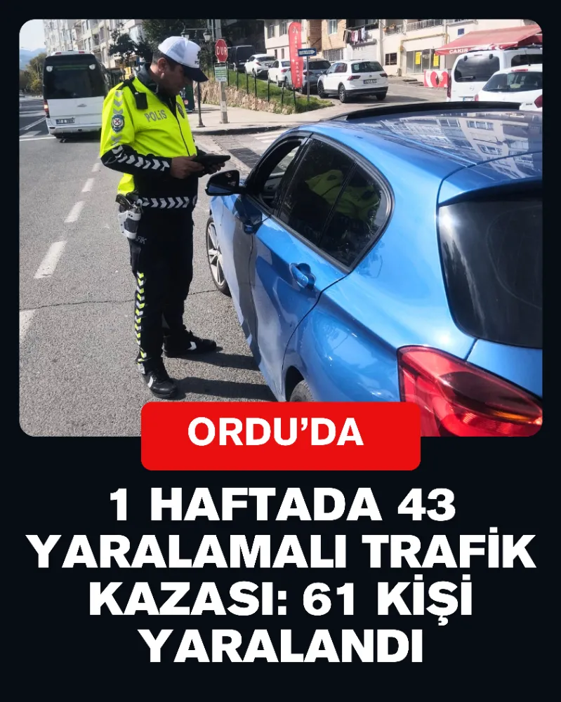 Emniyet birimlerince paylaşılan verilere göre, belirtilen tarihler arasında 43 yaralamalı trafik kazası yaşanırken, bu kazalarda 61 vatandaş yaralandı.