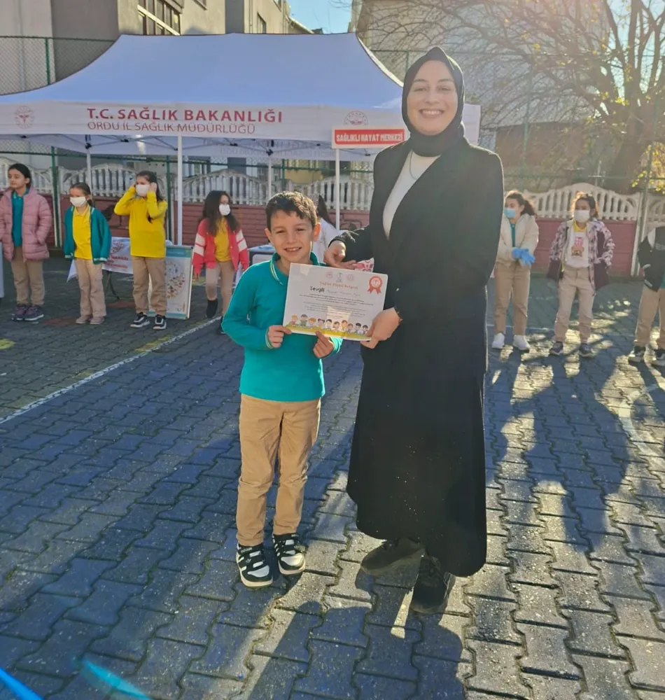 Proje kapsamında 18 Aralık 2025 Perşembe günü, Ünye Cumhuriyet Okulu’nda düzenlenen programda öğrenciler gün boyu sağlık konusunda bilgilendirildi. Etkinlikte; sağlıklı beslenme, hijyen kuralları, fiziksel aktivitenin önemi, bulaşıcı hastalıklardan korunma ve sağlıklı yaşam alışkanlıkları gibi başlıklarda öğrencilere yaş gruplarına uygun eğitimler verildi.