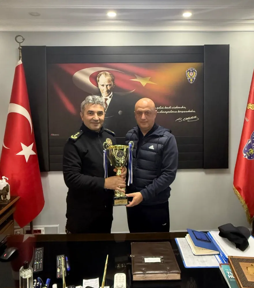 Ziyarette konuşan Kulüp Başkanı Metin Tamtürk, sporcu kimliğiyle ön plana çıkan ve desteklerini her zaman yanlarında hissettikleri İlçe Emniyet Müdürü Sarısoy ile şampiyonluk coşkusunu paylaşmaktan mutluluk duyduklarını ifade etti.