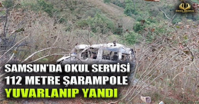 SAMSUN'DA OKUL SERVİSİ 112 METRE ŞARAMPOLE YUVARLANIP YANDI