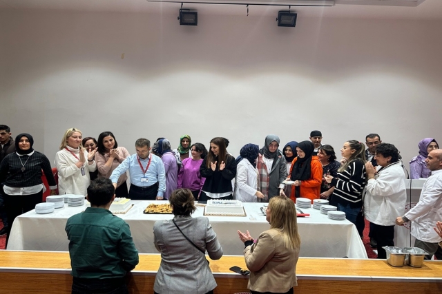 Konuşmanın ardından pasta kesilerek çeşitli ikramlıklar verildi.