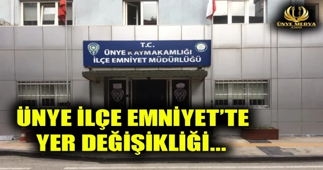 Ünye İlçe Emniyet Müdürlüğü hizmet binasında bulunan Polis Merkezi Amirliği ile Emniyet Müdürlüğü ek hizmet binasında bulunan Trafik Tescil ve Denetleme Büro Amirliği yer değiştirdi.