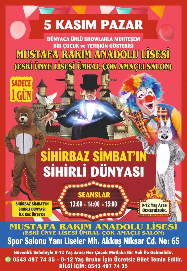 Ünye‘de bir ilk daha! Dünyaca ünlü Sihirbaz Simbat akıllara durgunluk verecek muhteşem bir çocuk ve yetişkin gösterisi ile halkın karşısına çıkacak.