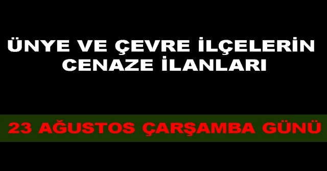 23 Ağustos Çarşamba günü Ünye ve Çevre İlçelerin cenaze ilanları.