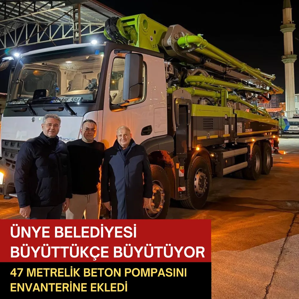 Konuya ilişkin değerlendirmede bulunan Hüseyin Tavlı, belediye iştiraklerinin her geçen gün daha güçlü bir yapıya kavuştuğunu belirterek, yapılan yatırımın ilçe genelindeki hizmet kalitesini artıracağını ifade etti. Tavlı, yeni beton pompasının Ünye’ye hayırlı olmasını temenni ederek, vatandaşlara daha hızlı ve etkin hizmet sunmaya devam edeceklerini vurguladı.