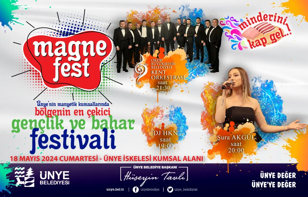 Ünye Belediyesi tarafından Geleneksel MAGNEFEST Gençlik ve Bahar Festivali 18 Mayıs Cumartesi günü yapılacak.