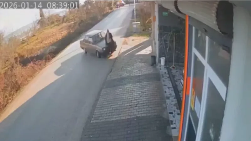 Kazanın tüm anları, iş yerinin güvenlik kamerası tarafından kaydedildi. Görüntülerde, otomobilin aniden kaydığı, yaşlı adama çarparak onu havaya fırlattığı ve ardından dükkânın içine girdiği net bir şekilde görülüyor.