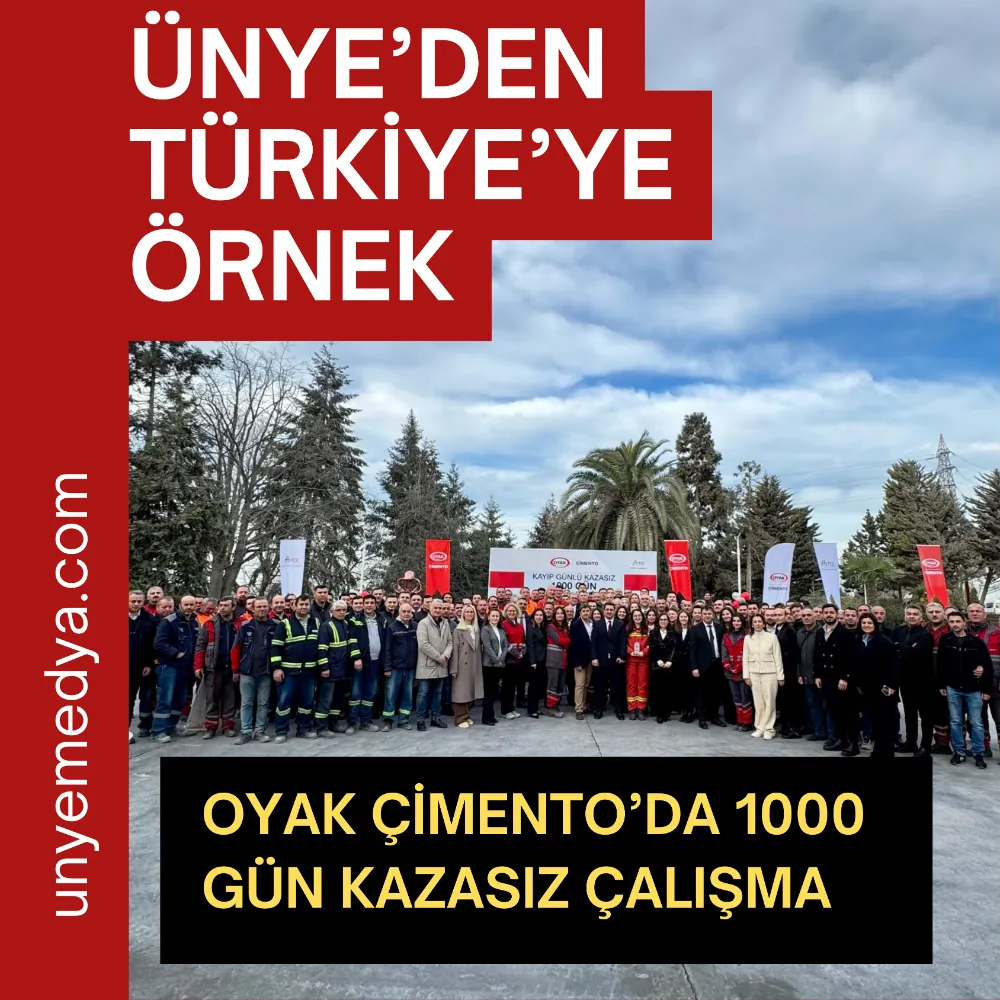Türkiye çimento sektörünün öncü kuruluşlarından OYAK Çimento, Ünye Fabrikası’nda iş sağlığı ve güvenliği alanında tarihi bir başarıya imza attı. Fabrika, “kayıp zamanlı kazasız 1000 gün” hedefini geride bırakarak önemli bir kilometre taşını çalışanları ve tedarikçileriyle birlikte kutladı.