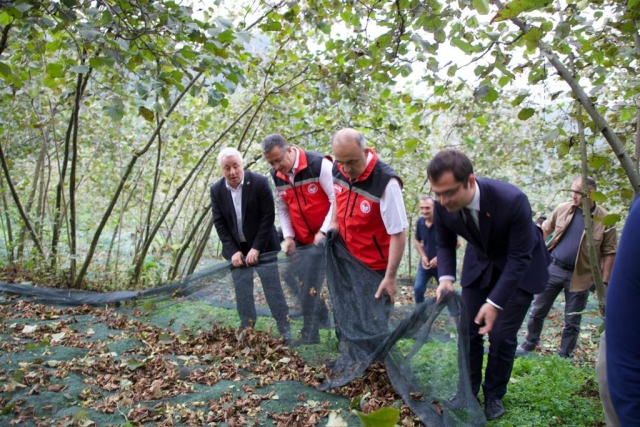 Beraberinde, Gölköy Kaymakamı Muhammed Sadi Taşyapan, Gölköy Belediye Başkanı Fikri Uludağ, İl Tarım ve Orman Müdürü Kemal Yılmaz ile birlikte fındık üreticisi Zeki Çelenk’in bahçesinde incelemelerde bulunan Vali Erol, 40 dekarlık alana serilen file yöntemini de yerinde gördü.