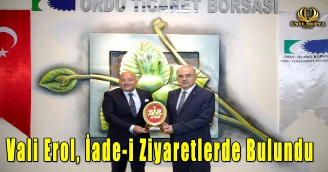 İlk ziyaretini Ordu Ticaret Borsasına yapan Vali Muammer Erol, Ordu Ticaret Borsası Başkanı Ziver Kahraman ve Borsa yönetim kurulu üyeleri tarafından karşılandı.