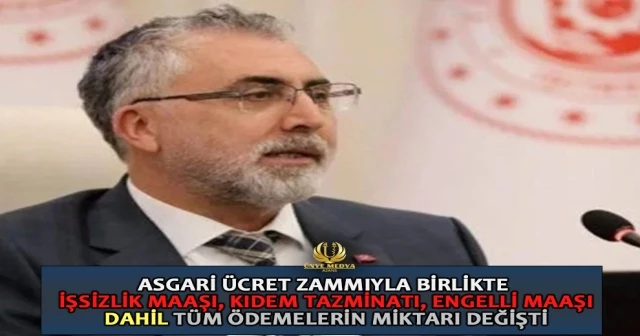 ASGARİ ÜCRET ZAMMIYLA BİRLİKTE İŞSİZLİK MAAŞI, KIDEM TAZMİNATI, ENGELLİ MAAŞI DAHİL TÜM ÖDEMELERİN MİKTARI DEĞİŞTİ