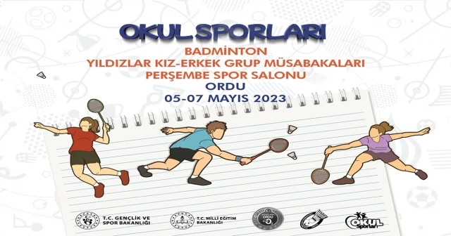 2022-2023 Yılı Okul Sporları Badminton Yıldızlar Kız – Erkek Grup Müsabakaları 05-07 Mayıs 2023 tarihleri arasında Ordu Gençlik ve Spor İl Müdürlüğü ev sahipliğinde Perşembe Spor Salonunda düzenlenecek.