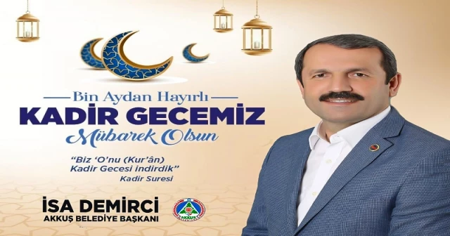 Akkuş Belediye Başkanı İsa Demirci, Kadir Gecesi dolayısıyla bir mesaj yayımlayarak hemşerilerinin ve bütün İslâm âleminin Kadir Gecesi’ni kutladı. Başkan Demirci mesajında şu ifadelere yer verdi, “ Kardeşlik, birlik ve beraberlik sofralarında buluştuğumuz Ramazan-ı Şerif'in sonuna gelirken, Kadir Gecesi'ne ulaşmanın manevi huzurunu ve Ramazan Bayramı'na kavuşacak olmanın sevincini yaşıyoruz. Bin aydan daha hayırlı olan Kadir Gecesi’nde Sema kapılarının ardına kadar açık olduğunu unutmadan ibadet etmeliyiz. Rahmet ve bereketin bol olduğu bu gecede dualarımız ile birbirimize ve Rabbimize yakınlaşalım. Dualarımızda, dünyada yaşanan tüm zulümlerin durmasını, ülkemizin birlik ve beraberlik içinde olmasını dileyelim.