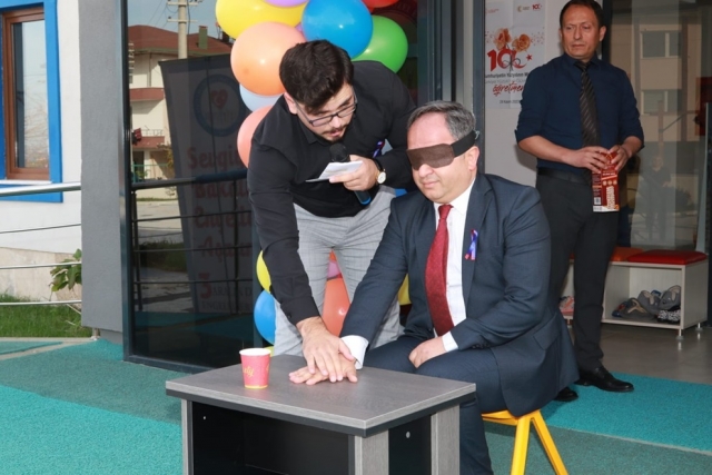 Programda ayrıca engellilerin neler hissettikleriyle ilgili kısa bir farkındalık etkinliği de yapıldı. Belediye Başkanı Hüseyin Tavlı ortopedik engel ile ahşap kuleden blok çekmeye çalışırken, İlçe Milli Eğitim Müdürü Özgür Tokgöz ise masa üstünde duran su bardağını gözleri kapalı bulmaya çalıştı.