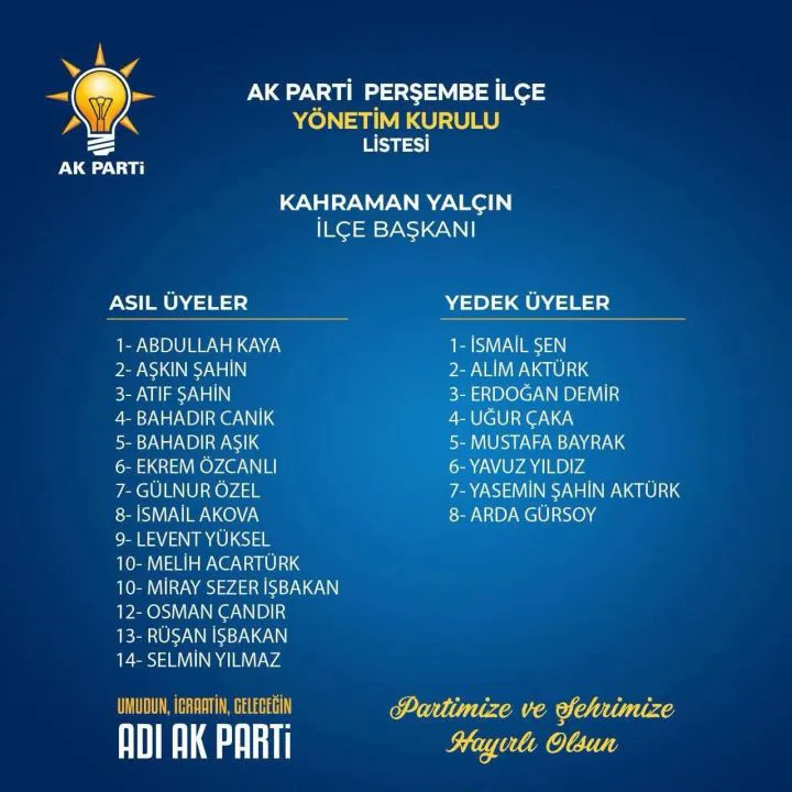 AK Parti Perşembe İlçe Yönetim Kurulu Açıklandı