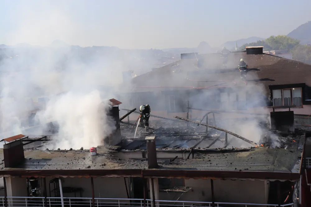 Yangın kısa sürede büyüyerek binanın tüm çatısın sardı.