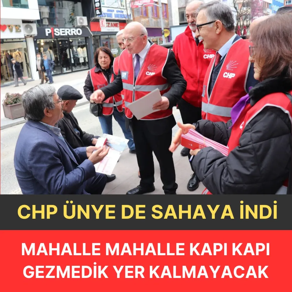 CHP Ünye ilçe başkanı İsa Maral ve Ünye İlçe örgütü 39. Olağan kongre sonrası genel merkezin aldığı kararı uygulayarak sahalara inerek kapı kapı gezerek parti Tüzüğü ve parti programını vatandaşlara anlatacak.