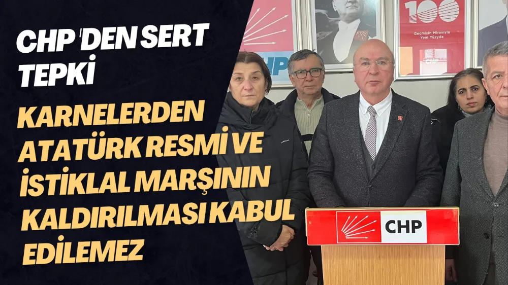CHP Ünye İlçe Başkanı İsa Maral ve yönetimi bu gün ilçe binasında basın toplantısı düzenleyerek Karnelerden Atatürk resmi ve İstiklal Marşı'nın kaldırılması 'na tepki olarak basın açıklaması düzenledi.