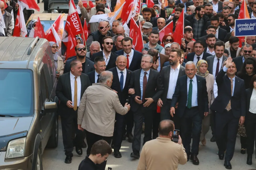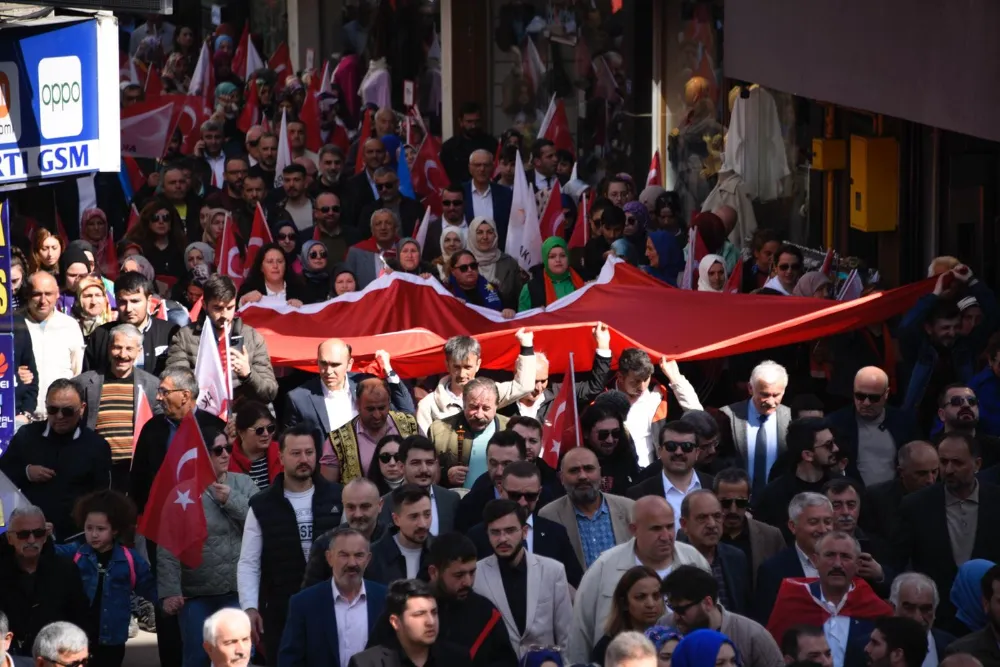 Yürüyüşe AK Parti’ye gönül veren vatandaşlar da bayraklarla eşlik ederek destek verdi.