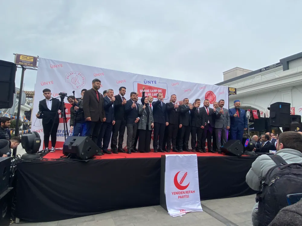 Yeniden Refah Partisi Genel Başkanı Dr. Fatih Erbakan: Ünye’de bu buluşmamız hayırlara vesile olsun. İslam âleminin tüm insanlığın kurtuluşuna vesile eylesin. Muazzam bir insan seliyle, büyük bir coşkuyla, samimiyetle bağrına basanlara teşekkür ediyorum. 1 Nisandan itibaren ahlaklı belediyecilik anlayışı ile sizlerin derdine derman olacağız. Meydanlarda 1994 ruhu açık bir şekilde hissediliyor. Kıymetli milli görüşlüler; Allaha şükürler olsun Meydanlar Yeniden Refah Diyor, milletimiz yeniden refah diyor, anketler yeniden refah diyor. İnşallah sandıklar da diyecek. Bu üye sayılarından kaynaklı. 6 ayda yüzde 80 üzerinde büyüme başka bir siyasi partiye nasip olmaz. Yeniden refah partisi Türkiye’nin en hızlı büyüyen siyasi partisidir.