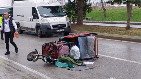 Kazada, 3 tekerlekli elektrikli bisiklet yol ortasına devrildi.