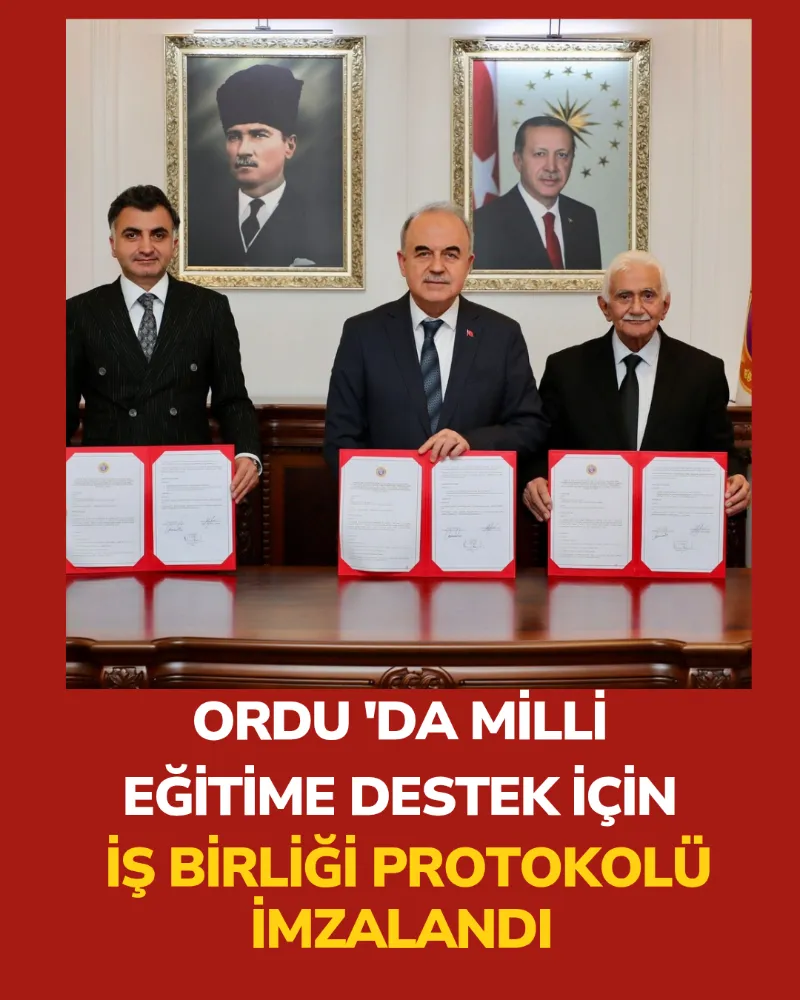 Vali Muammer Erol’un başkanlığında Valilik Makamında düzenlenen imza törenine; İl Milli Eğitim Müdürü Mehmet Fatih Vargeloğlu, Ordulular Vakfı Ordu İl Temsilcisi Recep Azaklı ile vakıf yönetim kurulu üyeleri katıldı. Protokol, Vali Muammer Erol, İl Milli Eğitim Müdürü Mehmet Fatih Vargeloğlu ve Ordulular Vakfı Ordu İl Temsilcisi Recep Azaklı tarafından imza altına alındı. Vali Erol, protokolün Ordu eğitimi için hayırlı olmasını diledi.