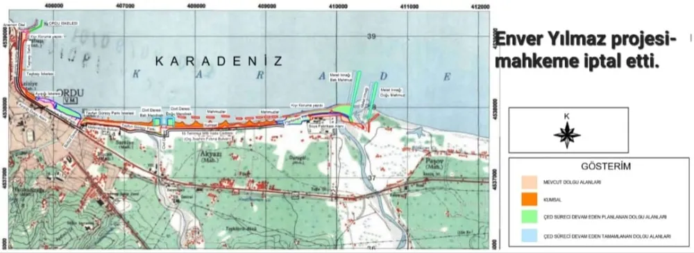 ORÇEV Yönetim Kurulunun açıklamasında, “Ordu Büyükşehir Belediyesi Başkanı Hilmi Güler tarafından “Kıyı Düzenleme ve Rekreatif Amaçlı Dolgu Projesi” için yaptığı ÇED başvurusu 16 Nisan 2024 tarihinde Bakanlıkta İDK toplantısında değerlendirilecek. Ancak bu proje Enver Yılmaz tarafından yapılan ve Ordu Çevre Derneği olarak Ordu İdare Mahkemesine açtığımız dava sonucu uygun bulunmayan proje iptal edilmişti. Sonra projeyi parçalayarak ayrı ayrı olarak uygulamak istediler, onlara da açtığımız davalar lehimize sonuçlandı. Bilirkişi raporunda da “proje uygulanırsa telafisi güç zararların olacağı” vurgulandı. Şimdi Hilmi Güler yeniden Enver Yılmaz’ın projesine sarıldı.