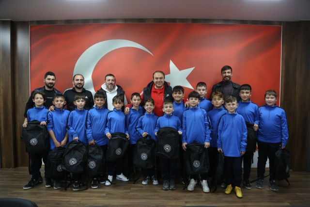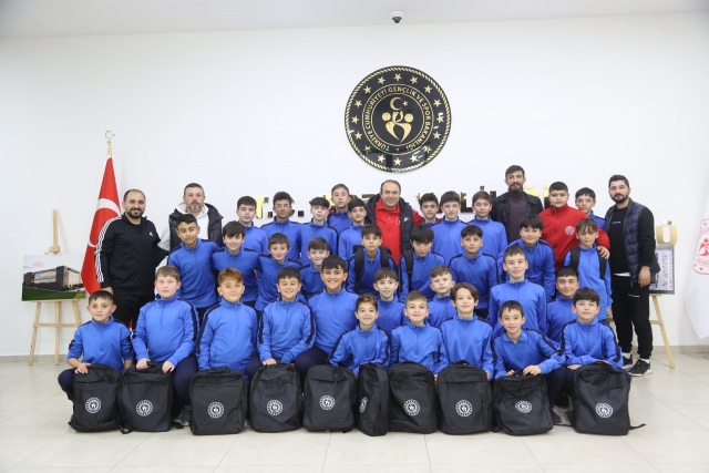 Sporcularla ve teknik heyetle birlikte hatıra fotoğrafı çektiren Genç, sporculara çeşitli spor malzemeleri ile ödüllendirdi.
