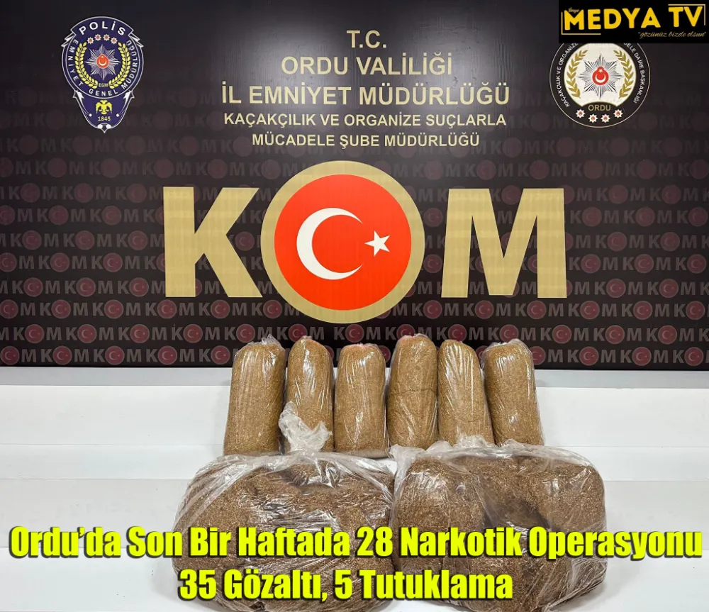 Son bir haftada Ordu’da gerçekleştirilen 28 narkotik operasyonunda, uyuşturucu suçlarıyla bağlantılı 35 kişi gözaltına alındı ve bunlardan 5’i tutuklandı. Operasyonlarda çeşitli miktarlarda uyuşturucu maddeler ele geçirildi ve farklı suçlardan adli işlemler yapıldı. İşte bazı dikkat çekici vakalar: