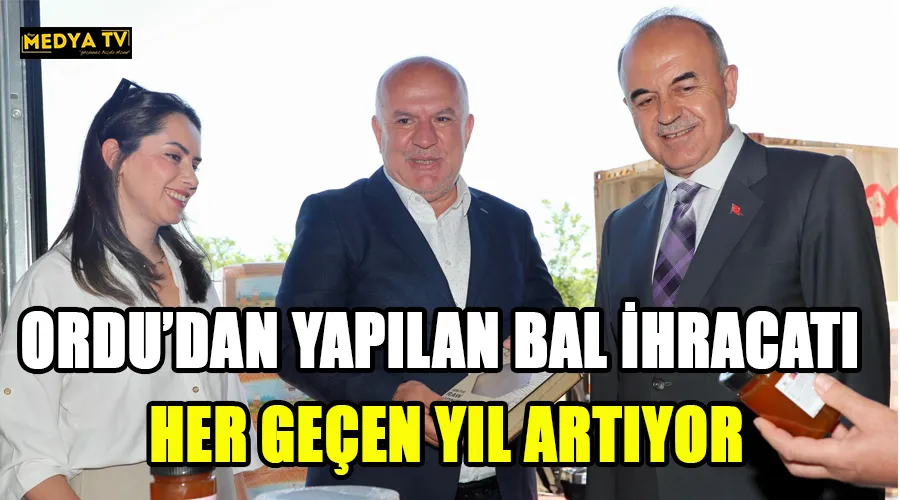Vali Muammer Erol, Ordu’nun ülkemizde 19.100 ton bal üretimi ile birinci sırada yer aldığını söyleyerek, “İlimiz arıcılarının tamamına yakını gezginci arıcılık yapmaktadır ve ürettikleri balın büyük çoğunluğunu iç piyasada satmaktadırlar. Buna karşın bal ihracatımız da yıllara göre artış göstermektedir. Bugün ise İngiltere’ye 17.000 kg bal ihracatı için tıra yükleme yapıldı ve İl Tarım ve Orman Müdürlüğümüz ekiplerince sağlık sertifikası işlemleri gerçekleştirildi. 5 çeşit bal bugün ihraç edilecek olup, bunlar karakovan balı, petekli kaset bal, kekik balı, düz petekli bal ve süzme baldır” diye konuştu.